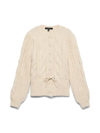 Nydelig cardigan fra Vero Moda. Denne har flette mønster,snor i livet og trekkte knapper. 83% Polyester – Recycled, 11% Nylon – Recycled, 6% Wool – RWS